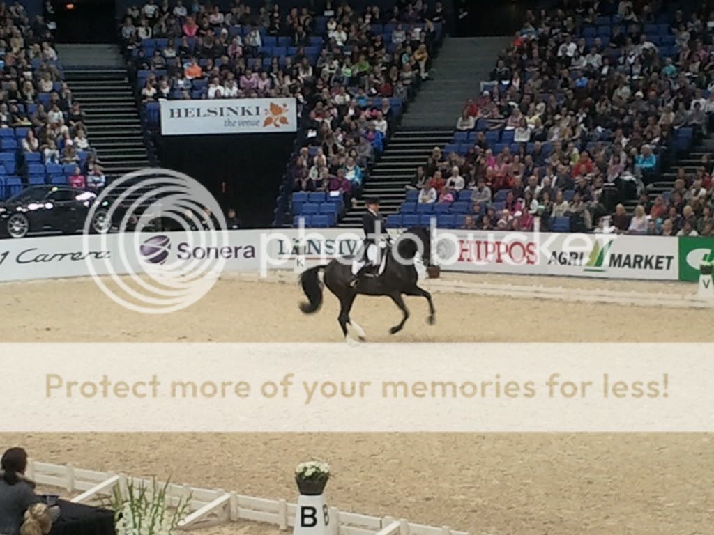 Tätä reissua oltiin suunniteltua serkun kanssa vuosia ja nyt vihdoin saatiin aikaseksi lähteä. Koko päivä meni Hartwall areenalla hevosia ihmetellen. Serkkutyttö meinasi pyörtyä, kun jännitti ratsastajien puolesta niin paljon, mutta minä tyttö oli vain innoissani - mitä vaarallisempaa, sen viihdyttävämpää! En koskaan vaan ajatellut itseäni sinne hevosen selkään... Nautittiin kyllä älyttömästi, fiilis oli mahtava, eikä naurulta meinnannut tulla loppua kun kaksi mualaista ajaeli Ka-autolla Helsingissä mm. vastaantulevien kaistalla. Hengissä ollaan silti!